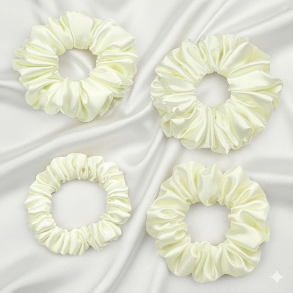 Ekai Scrunchies in Cream | premium Satin Scrunchies | Skinny | Mini | L | XL